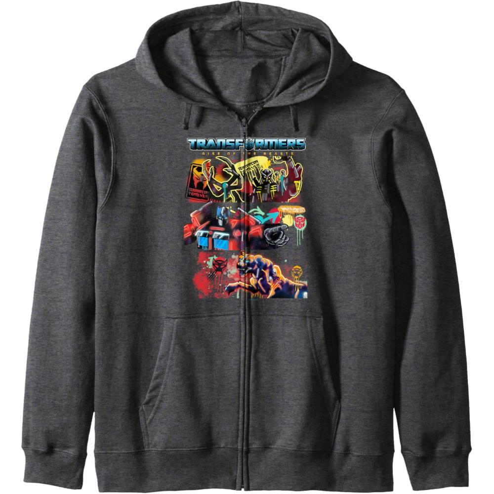 Transformers: Rise of the Beasts Epic Graffiti Battle Panels Zip Hoodie(Dark Heather Grey)