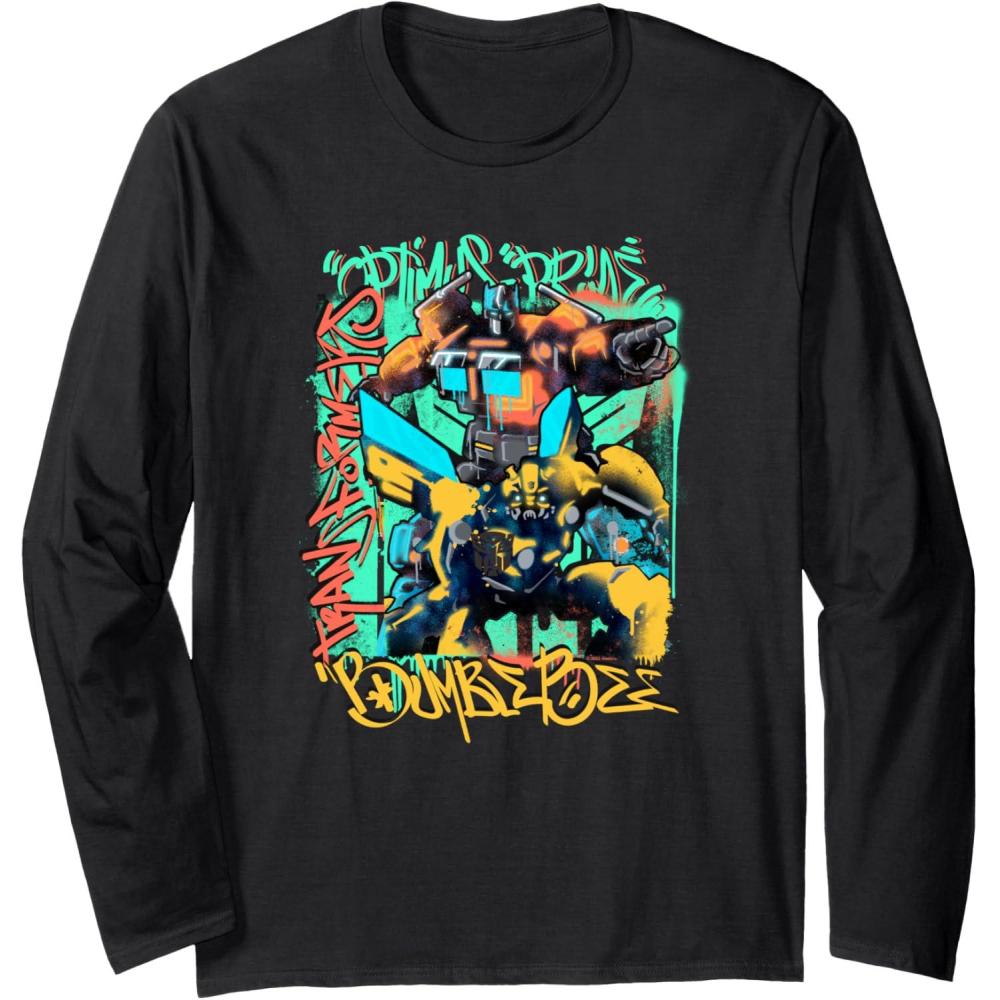 Transformers: Rise of the Beasts Optimus & Bee Graffiti Shot Long Sleeve T-Shirt(Black)