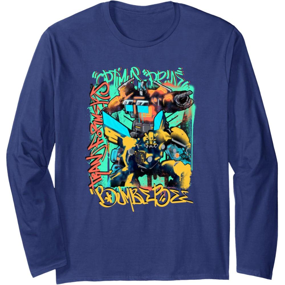 Transformers: Rise of the Beasts Optimus & Bee Graffiti Shot Long Sleeve T-Shirt(Navy Blue)