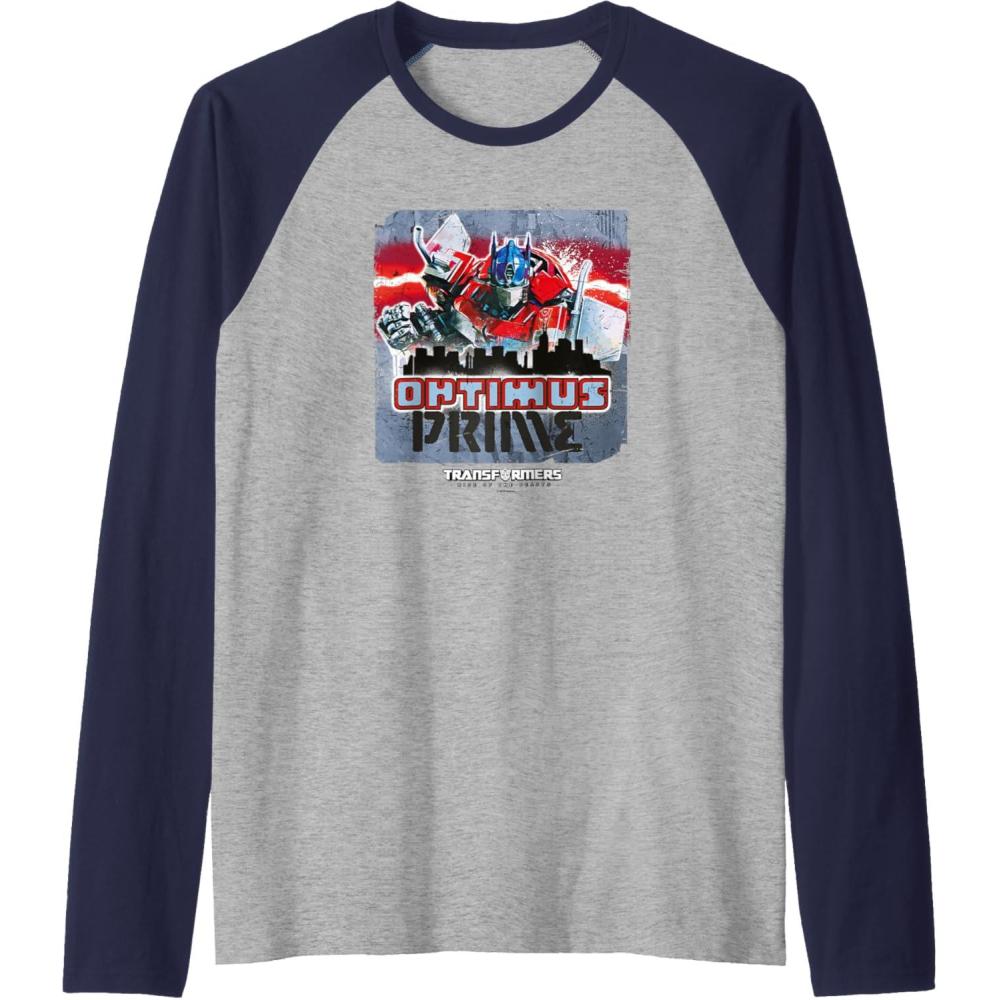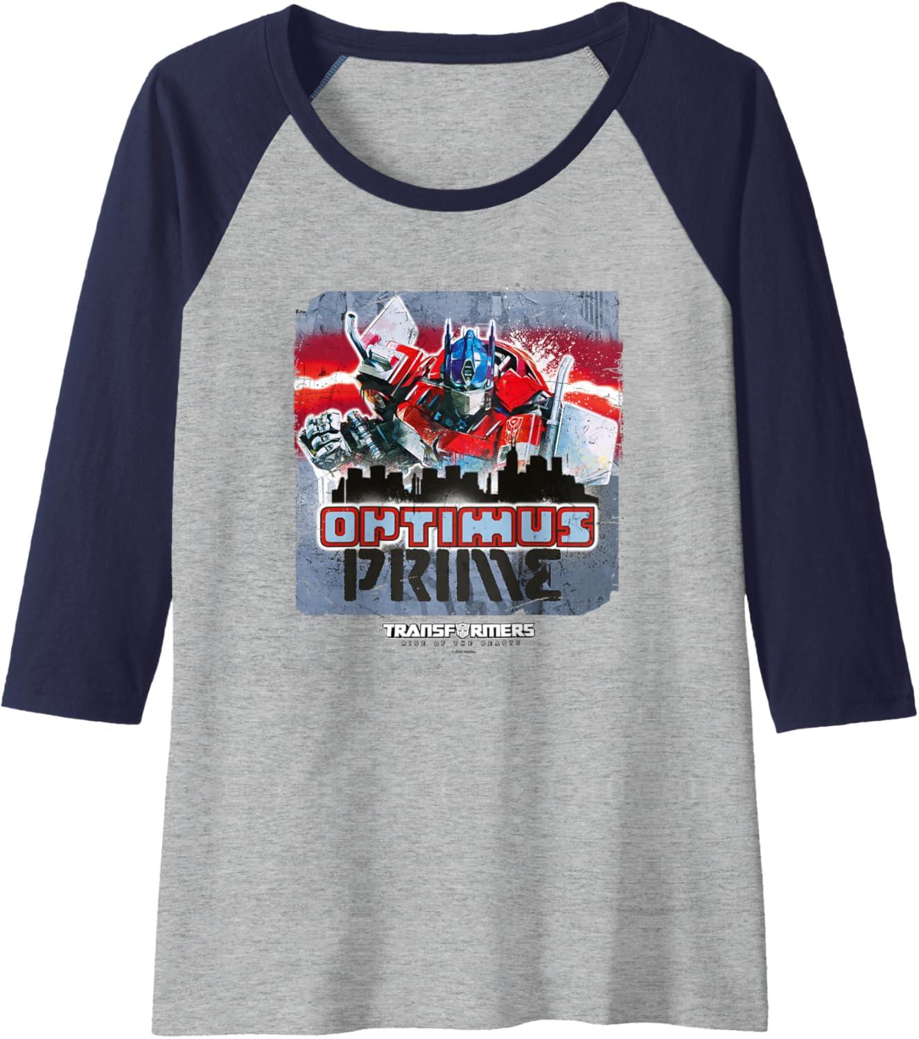 Transformers: Rise of the Beasts Optimus Distressed Shot Raglan Baseball Tee(Black/Athletic Heather)