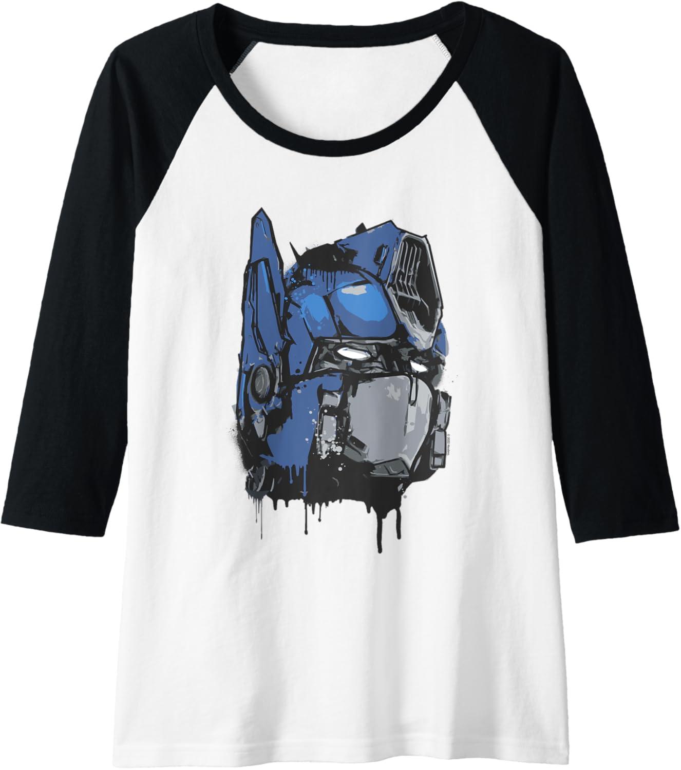 Transformers: Rise of the Beasts Optimus Dripping Retro Shot Raglan Baseball Tee(Black/White)