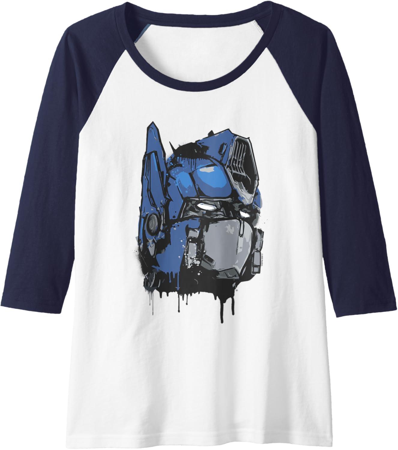 Transformers: Rise of the Beasts Optimus Dripping Retro Shot Raglan Baseball Tee(Navy Blue/White)