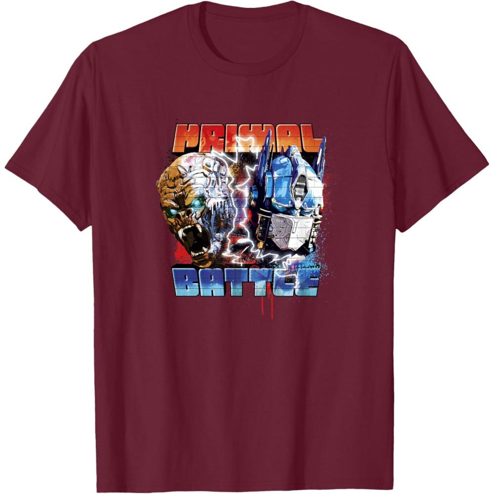 Transformers: Rise of the Beasts Primal Battle Action Poster T-Shirt(Burgundy)