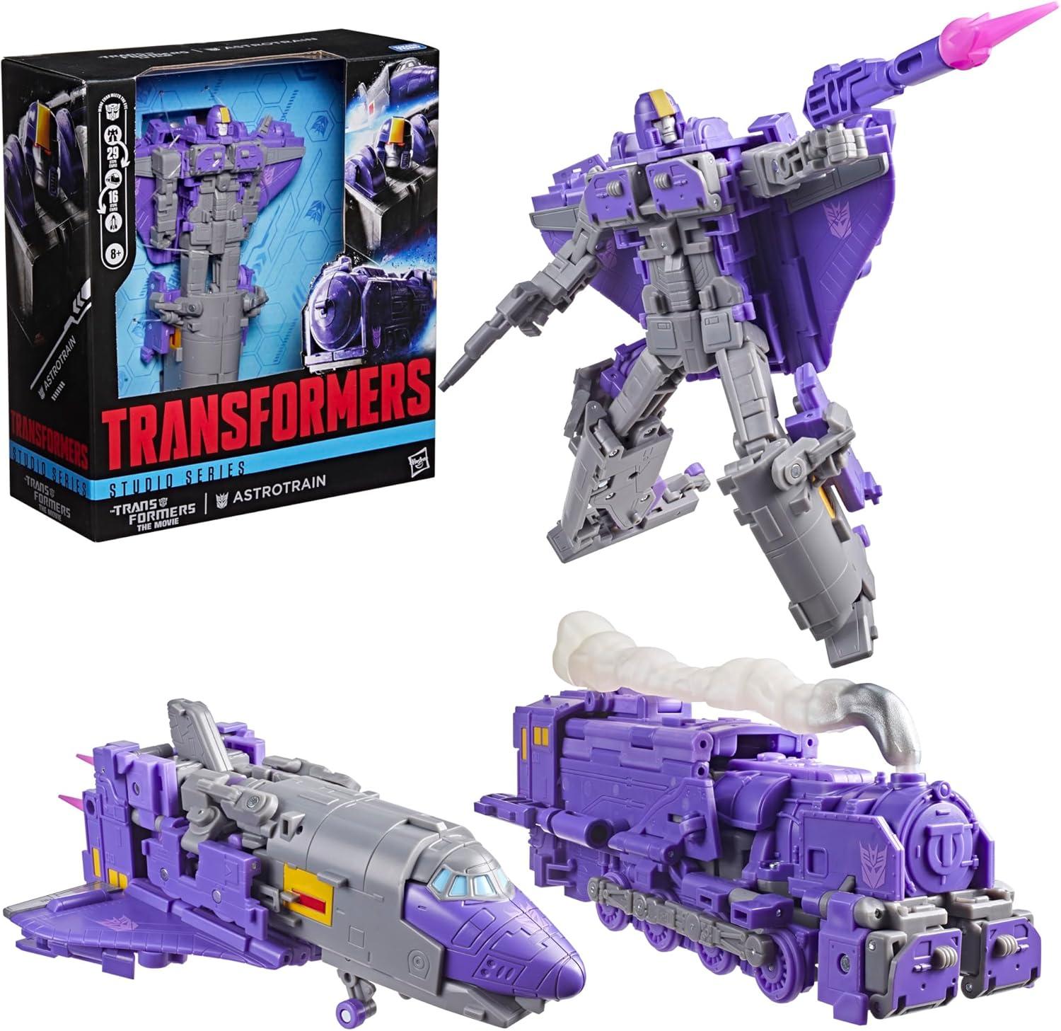6.75-INCH ASTROTRAIN FROM THE TRANSFORMERS: THE MOVIE: This Transformers Studio Series Astrotrain figure is 6.75 inches (17 cm) in robot mode and features movie-inspired deco and details