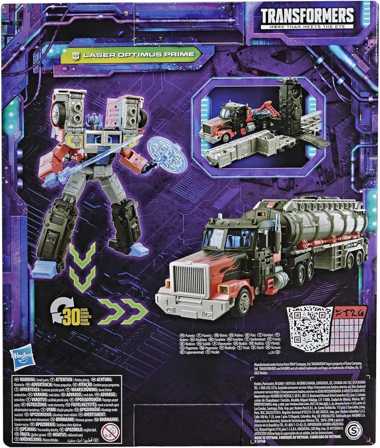 TRANSFORMERS G2-INSPIRED DESIGN: This Legacy Series Transformers 7-inch G2 Universe Laser Optimus Prime robot toy is inspired by the Transformers: Generation 2 animated series, updated with a Generations-style design