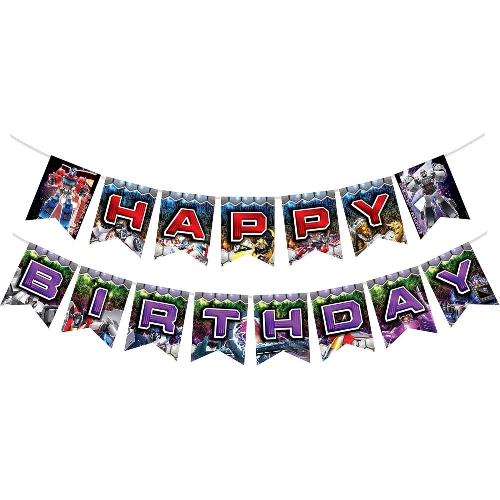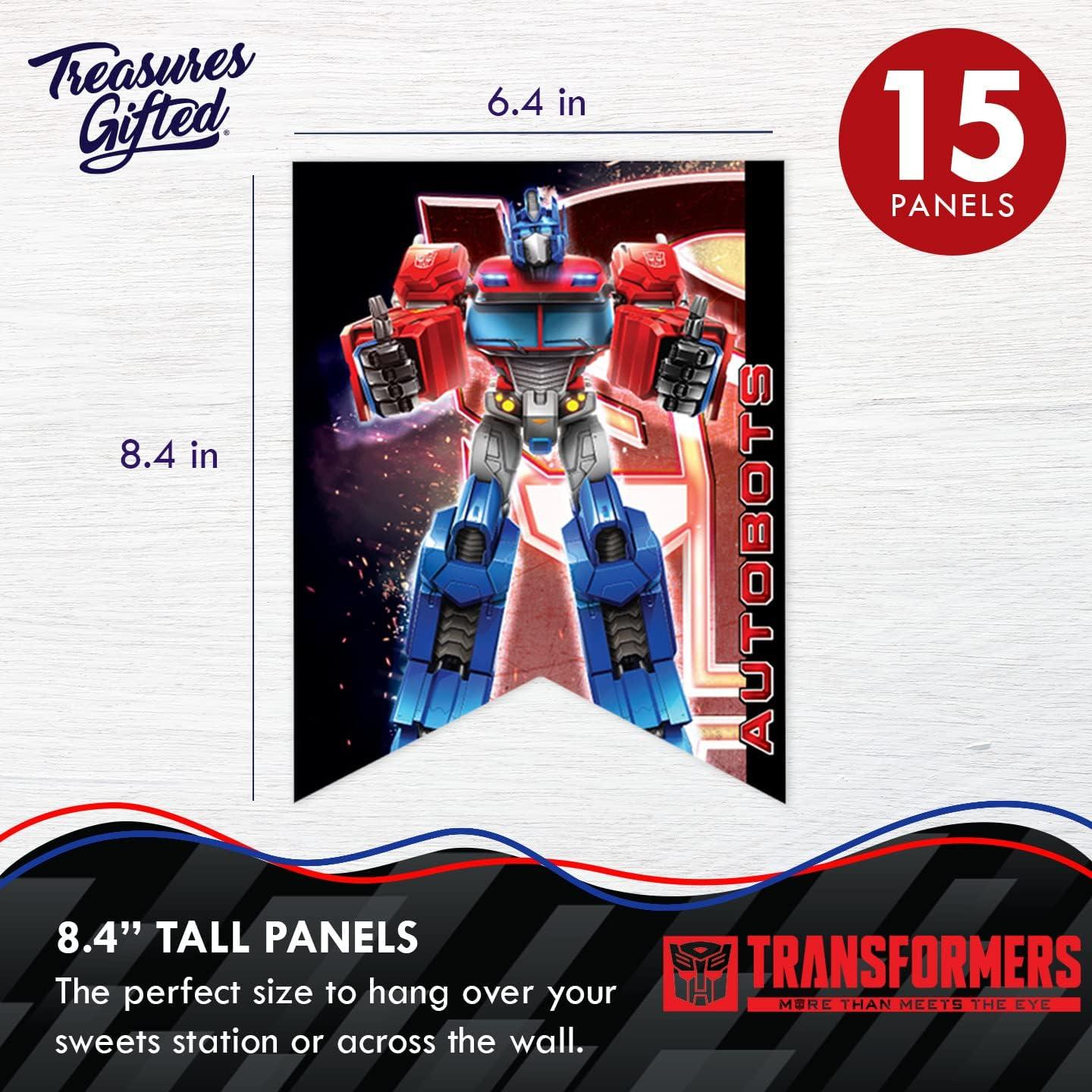 Our Transformers birthday party decorations include 1 Transformers birthday banner with (15) 6.4 x 8.4 inch panels. This easy to hang, pre-strung birthday banner is sure to make a great addition to your Transformers birthday party supplies!