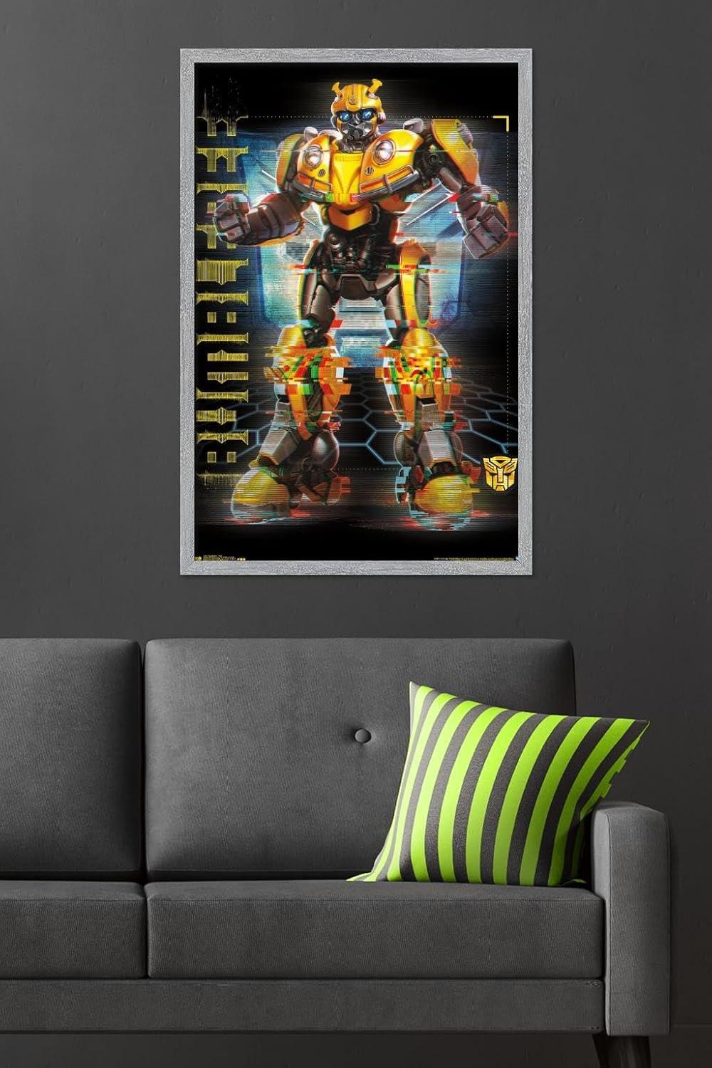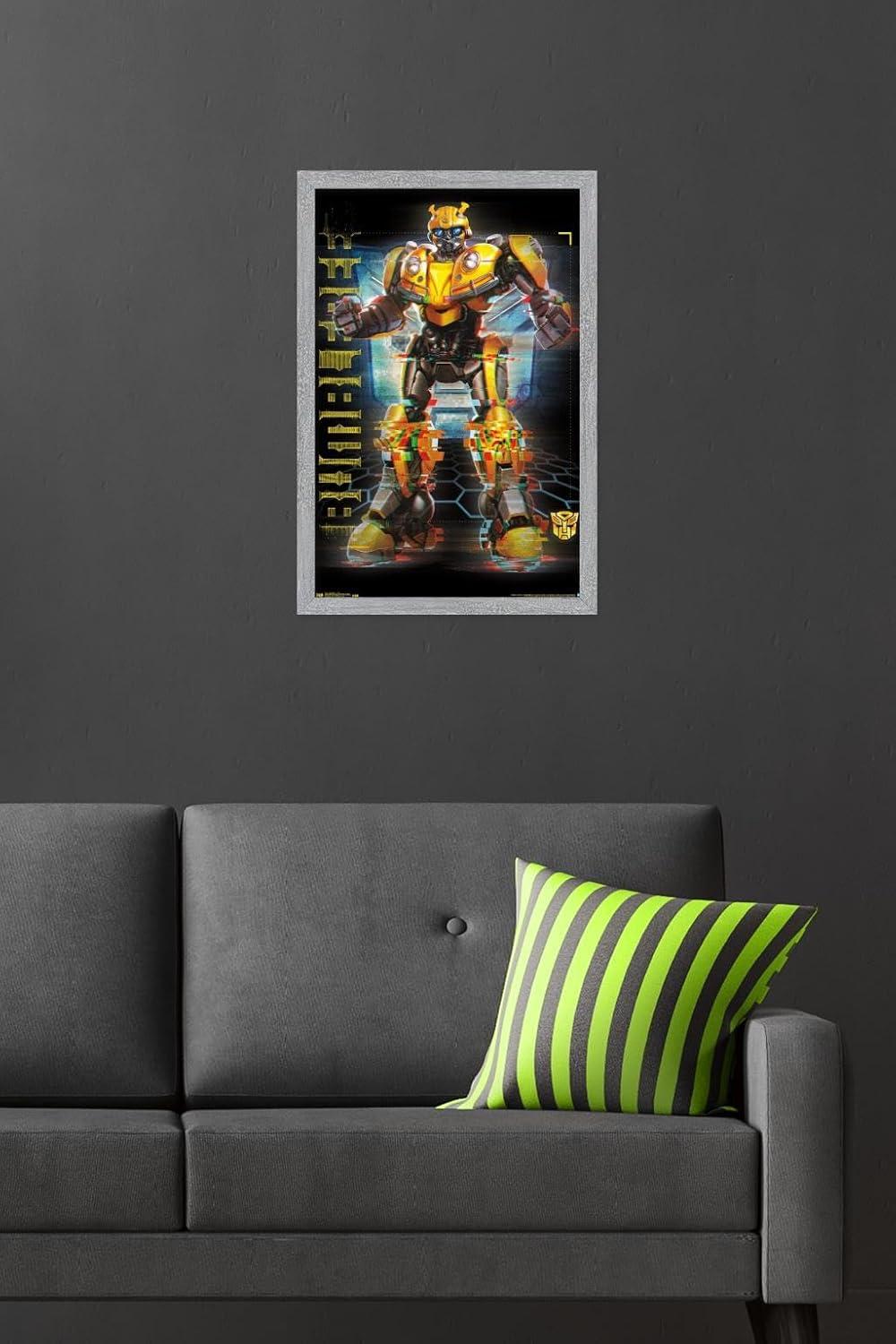 Trends International Hasbro Transformers: Bumblebee - Glitch Wall Poster, 14.725" x 22.375", Barnwood Framed Version(Gray Framed Version)
