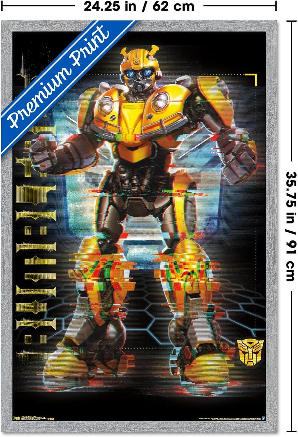 Trends International Hasbro Transformers: Bumblebee – Glitch Wall Poster, 14.725″ x 22.375″, Barnwood Framed Version(Gray Framed Version)