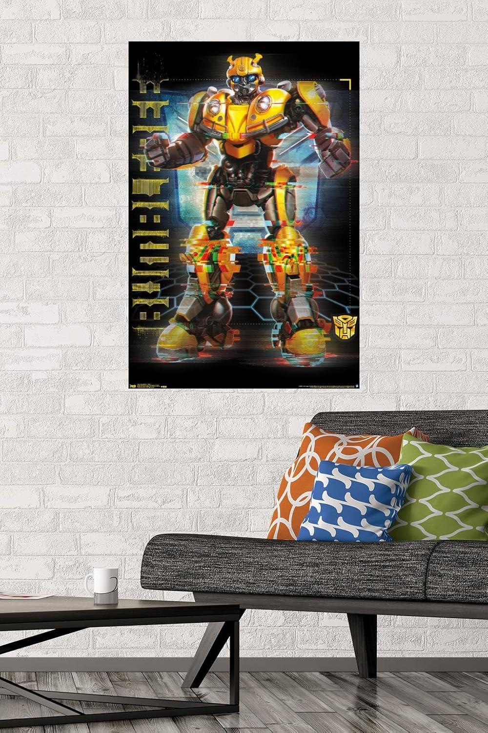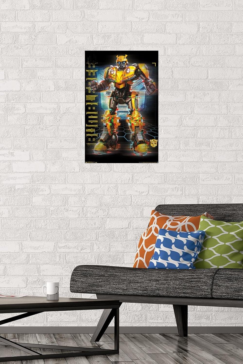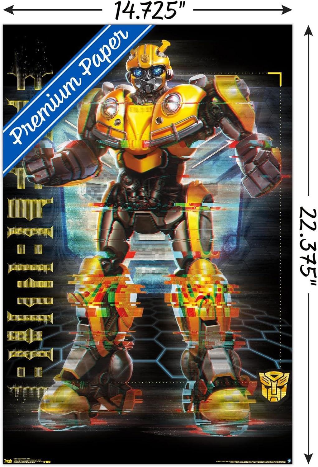 Trends International Hasbro Transformers: Bumblebee - Glitch Wall Poster, 14.725" x 22.375", Barnwood Framed Version(Premium Unframed Version)