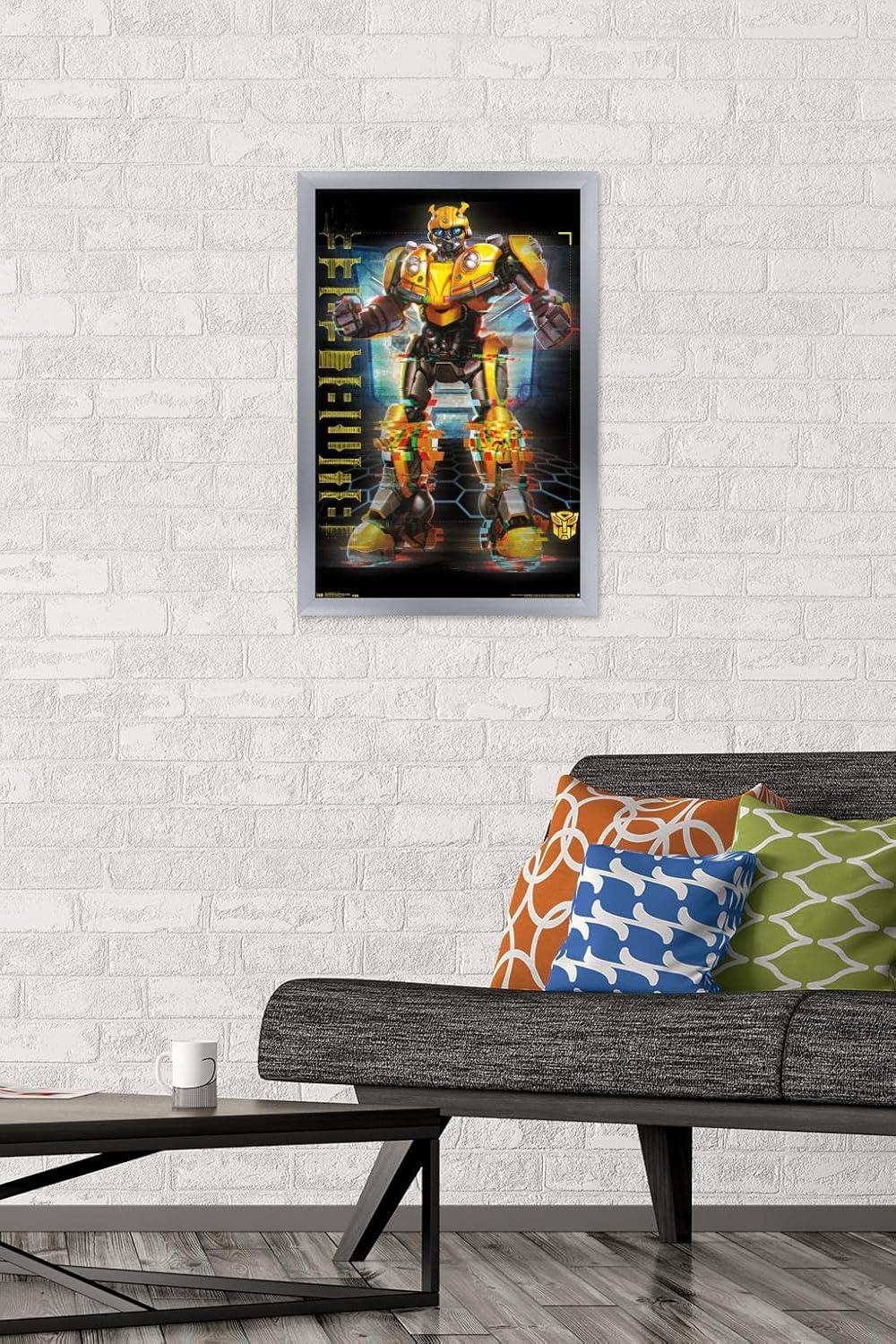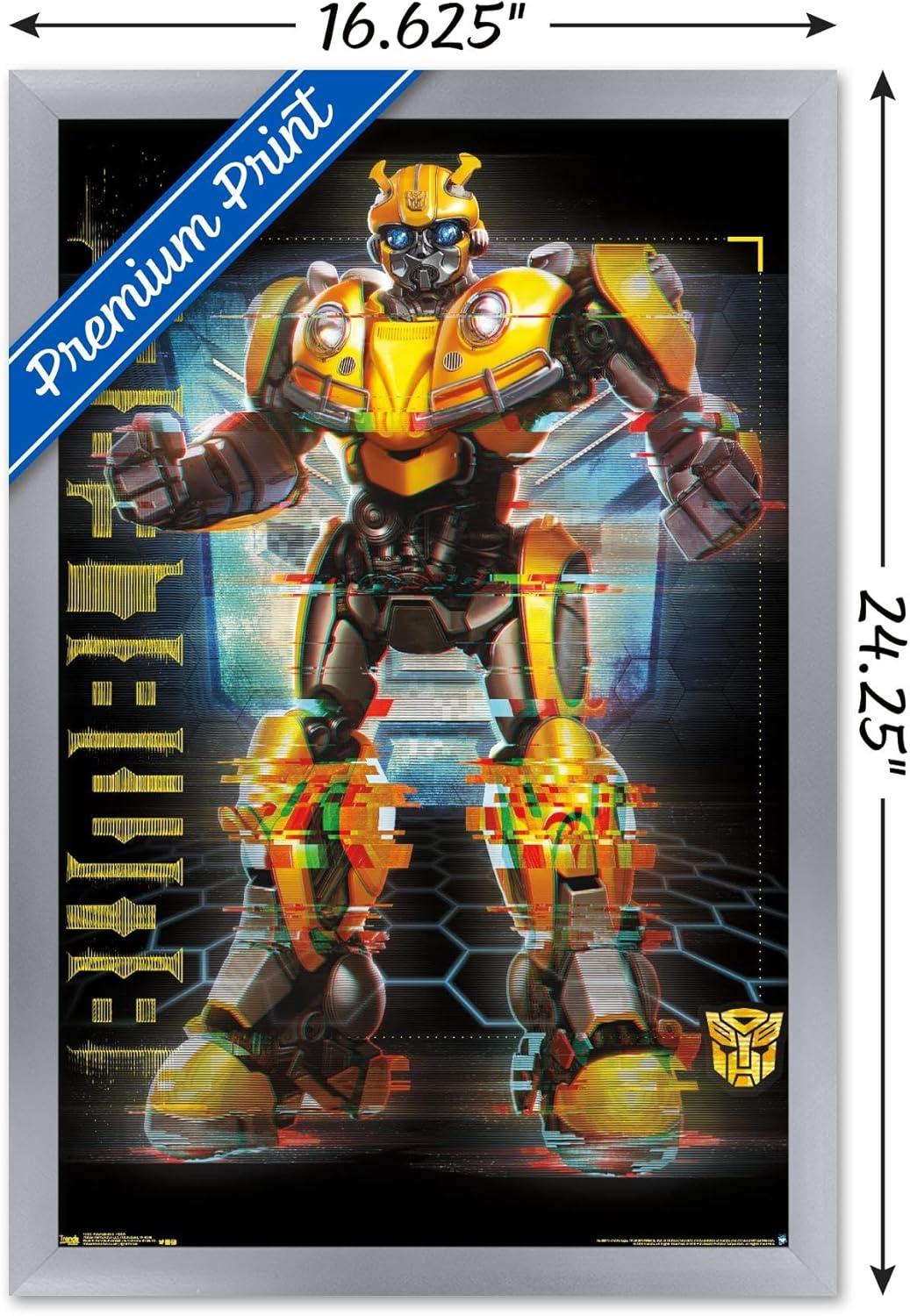 Trends International Hasbro Transformers: Bumblebee - Glitch Wall Poster, 14.725" x 22.375", Barnwood Framed Version(Silver Framed Version)