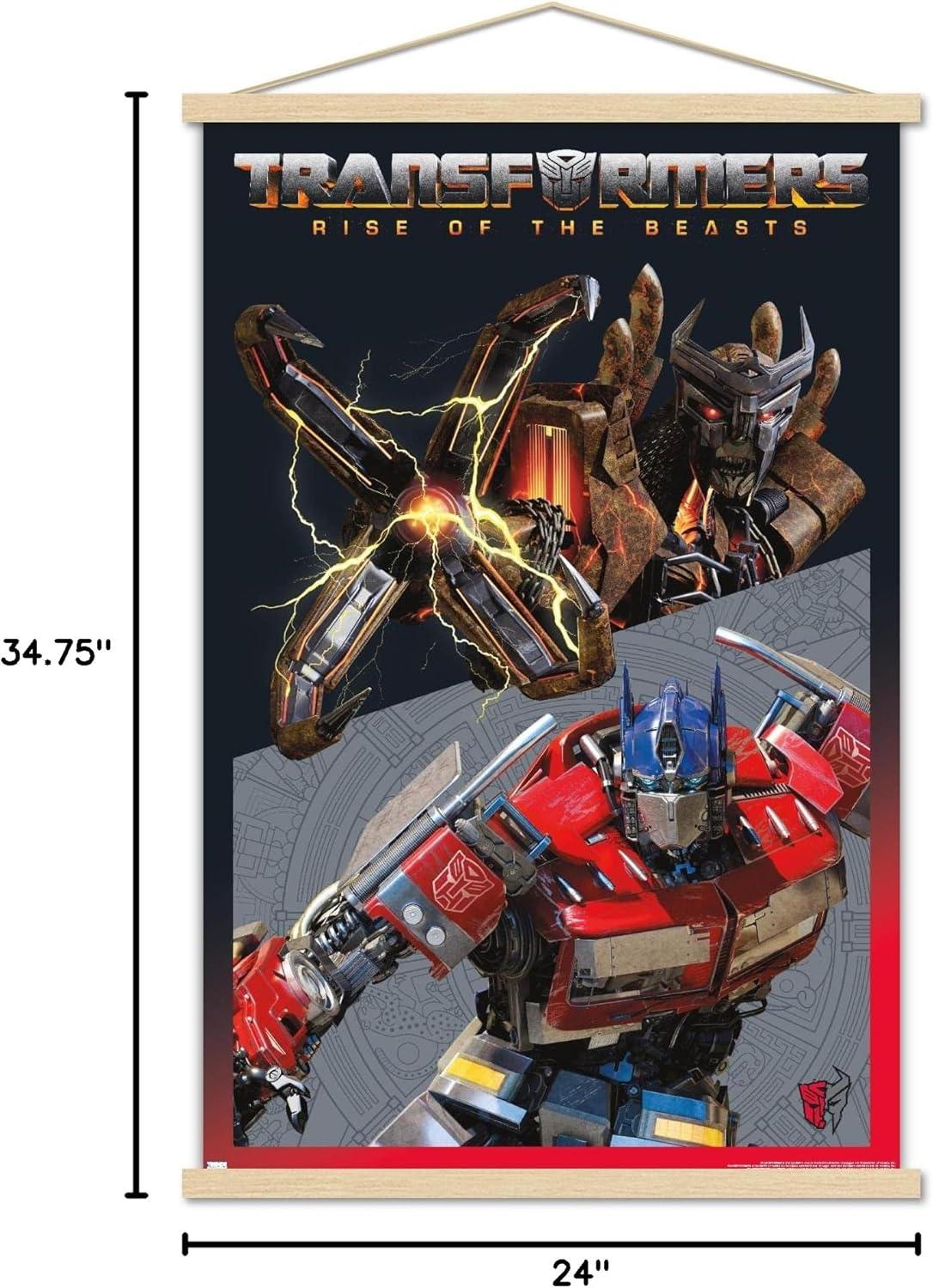 Trends International Hasbro Transformers: Rise of the Beasts – Optimus Prime vs. Scourge Wall Poster, 22.37″ x 34.00″, Premium Print and Beechwood Hanger Bundle(Premium Print and Black Hanger Bundle)