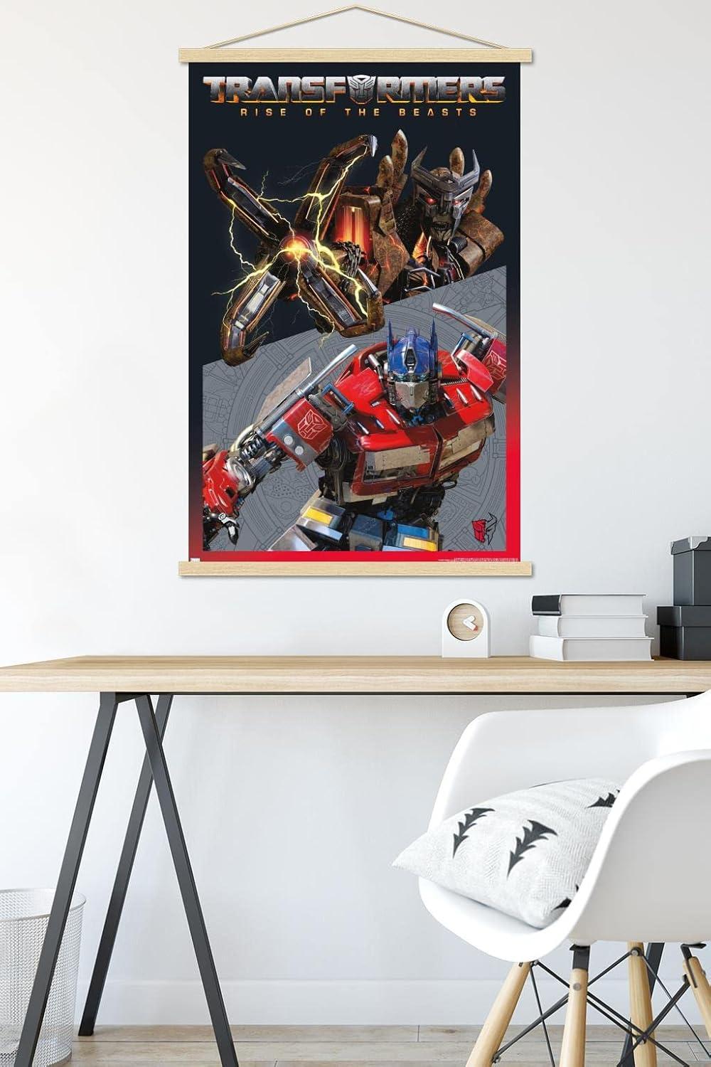 Trends International Hasbro Transformers: Rise of the Beasts – Optimus Prime vs. Scourge Wall Poster, 22.37″ x 34.00″, Premium Print and Beechwood Hanger Bundle(Premium Print and Beechwood Hanger Bundle)