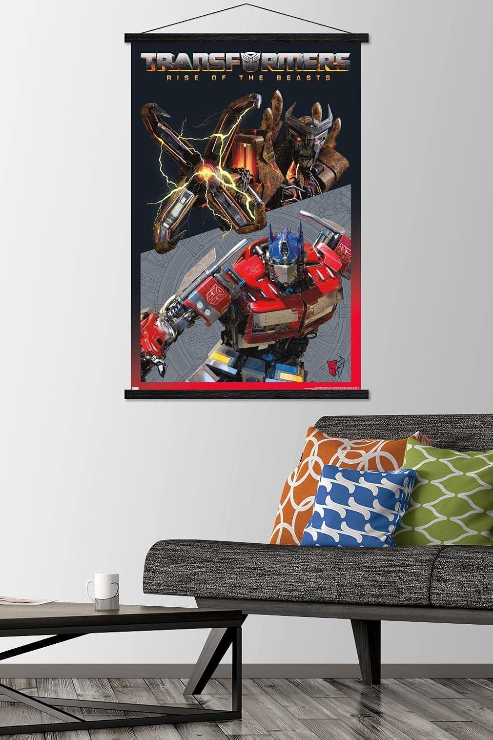 Trends International Hasbro Transformers: Rise of the Beasts – Optimus Prime vs. Scourge Wall Poster, 22.37″ x 34.00″, Premium Print and Beechwood Hanger Bundle(Premium Print and Beechwood Hanger Bundle)