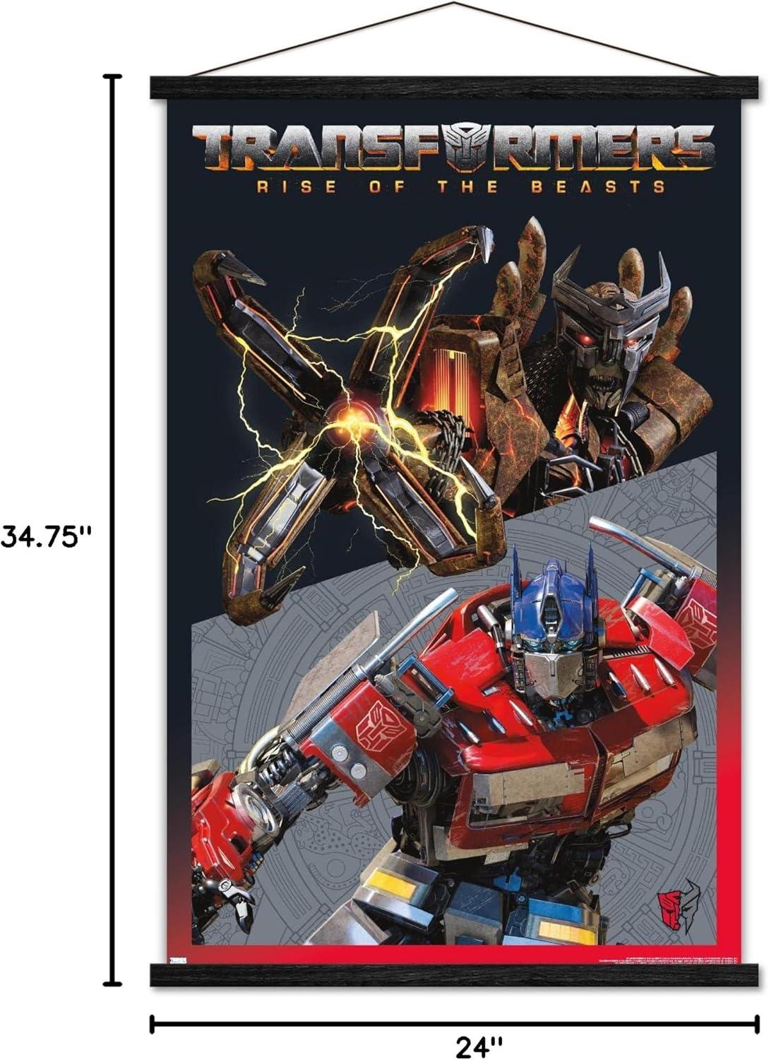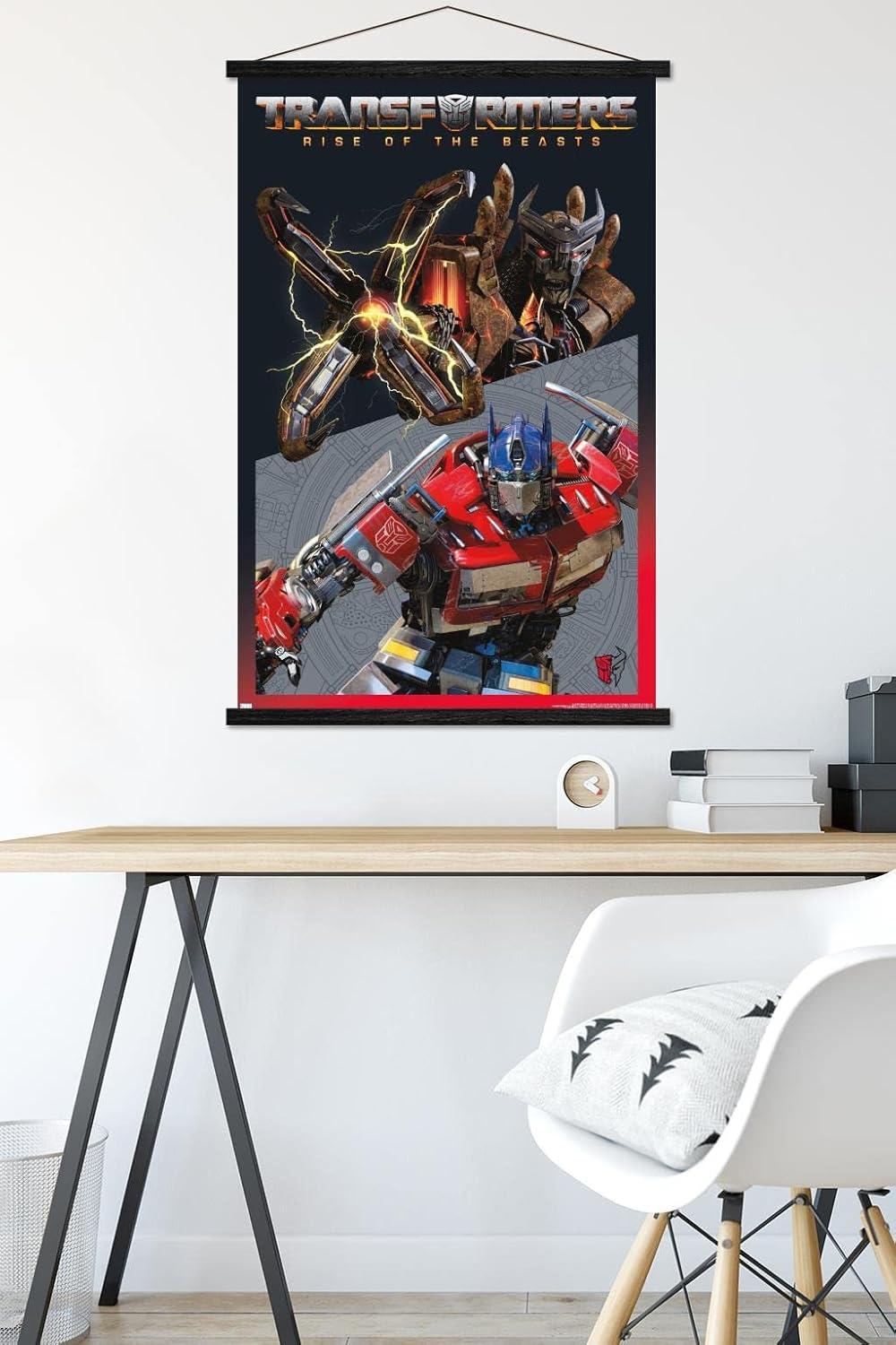 Trends International Hasbro Transformers: Rise of the Beasts – Optimus Prime vs. Scourge Wall Poster, 22.37″ x 34.00″, Premium Print and Beechwood Hanger Bundle(Premium Print and White Hanger Bundle)