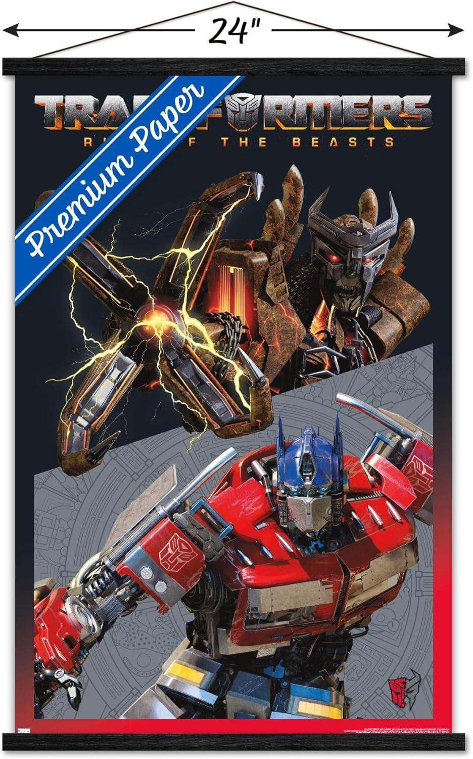 Trends International Hasbro Transformers: Rise of the Beasts – Optimus Prime vs. Scourge Wall Poster, 22.37″ x 34.00″, Premium Print and Beechwood Hanger Bundle(Premium Print and Black Hanger Bundle)