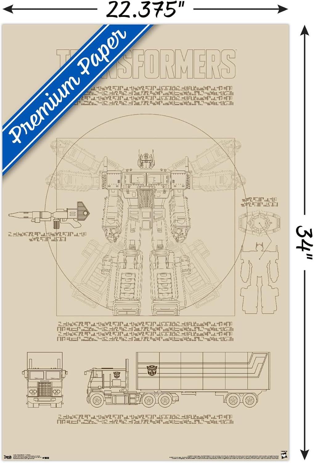 Trends International Hasbro Transformers – Sketch Wall Poster, 22.375″ x 34″, Barnwood Framed Version(Premium Poster & Clip Bundle)