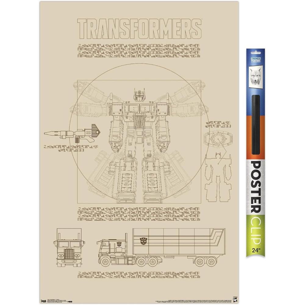Trends International Hasbro Transformers - Sketch Wall Poster, 22.375" x 34", Barnwood Framed Version(Premium Poster & Clip Bundle)