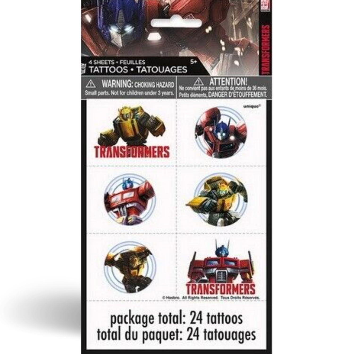 Transformers Birthday Party Supplies includes 24 Tattoos on 4 Sheets.