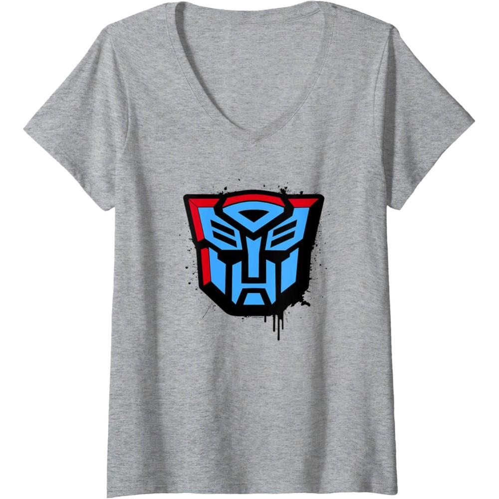 Be the first to review “Womens Transformers Autobots Dripping Spray Paint Logo V-Neck T-Shirt(Heather Grey)”