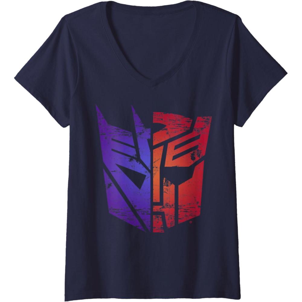 Womens Transformers Decepticon Autobot Distressed Split Logo V-Neck T-Shirt(Navy Blue)