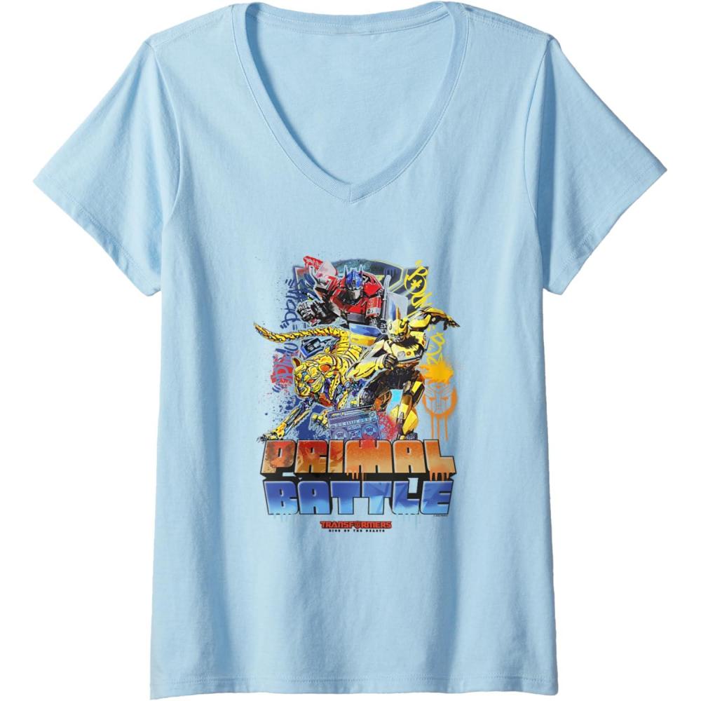 Womens Transformers: Rise of the Beasts Primal Battle Graffiti Shot V-Neck T-Shirt(Baby Blue)