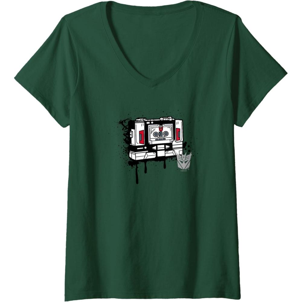 Womens Transformers Soundwave Tape Cassette Player Form Graffiti V-Neck T-Shirt(Dark Green)