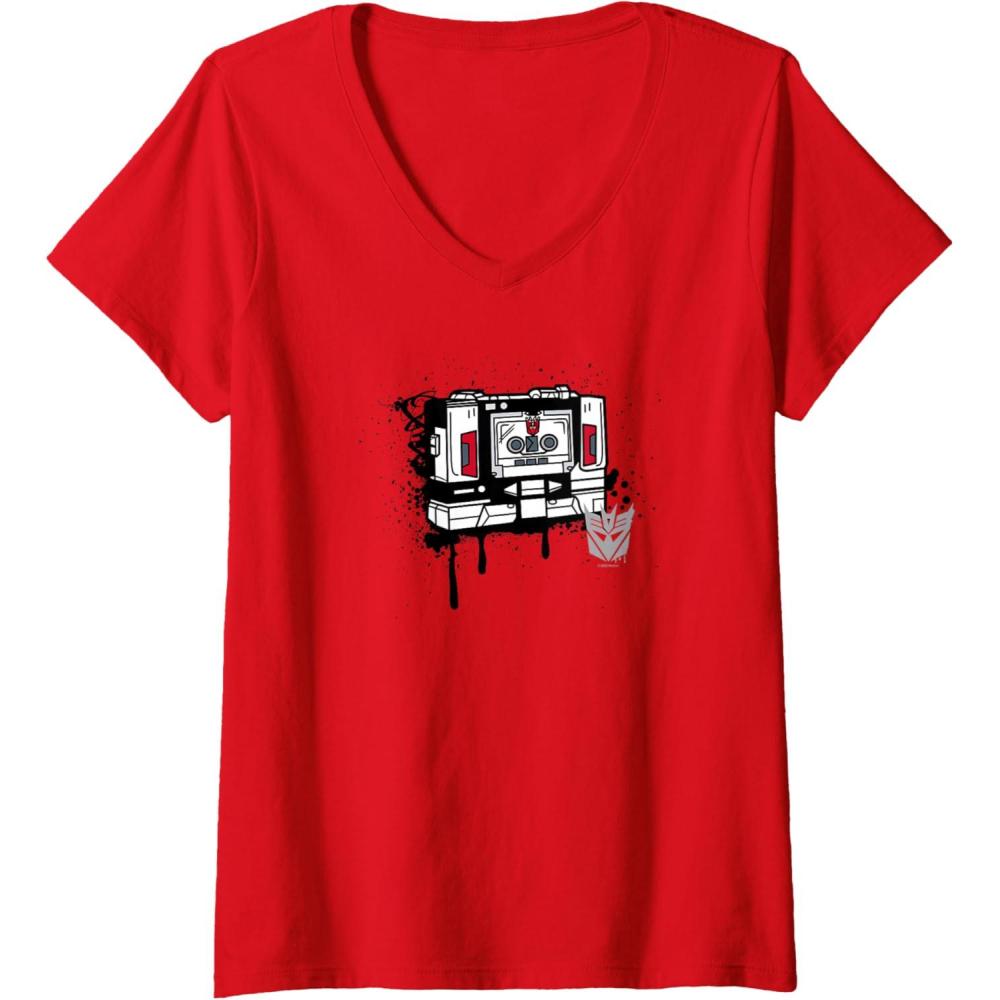 Womens Transformers Soundwave Tape Cassette Player Form Graffiti V-Neck T-Shirt(Red)